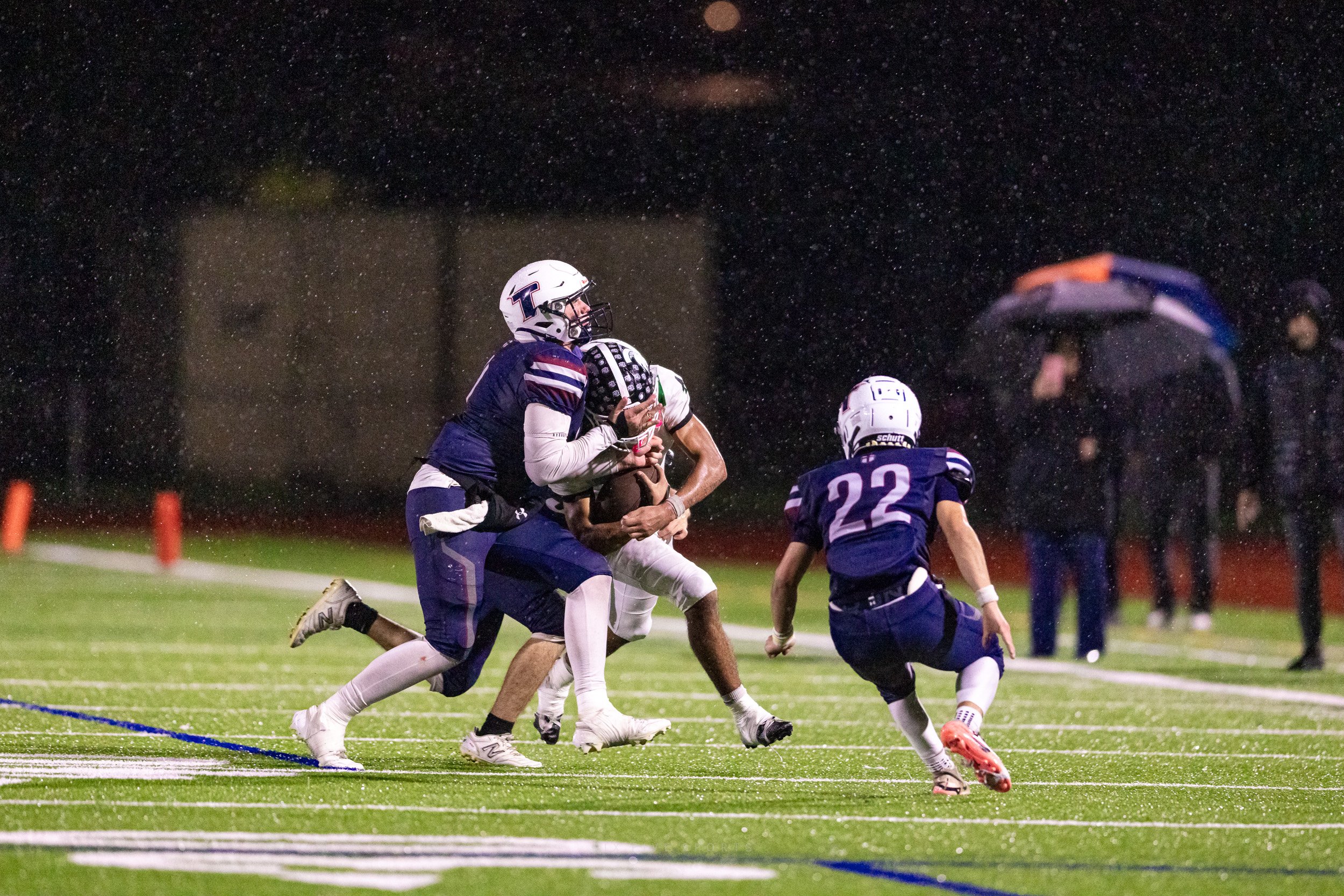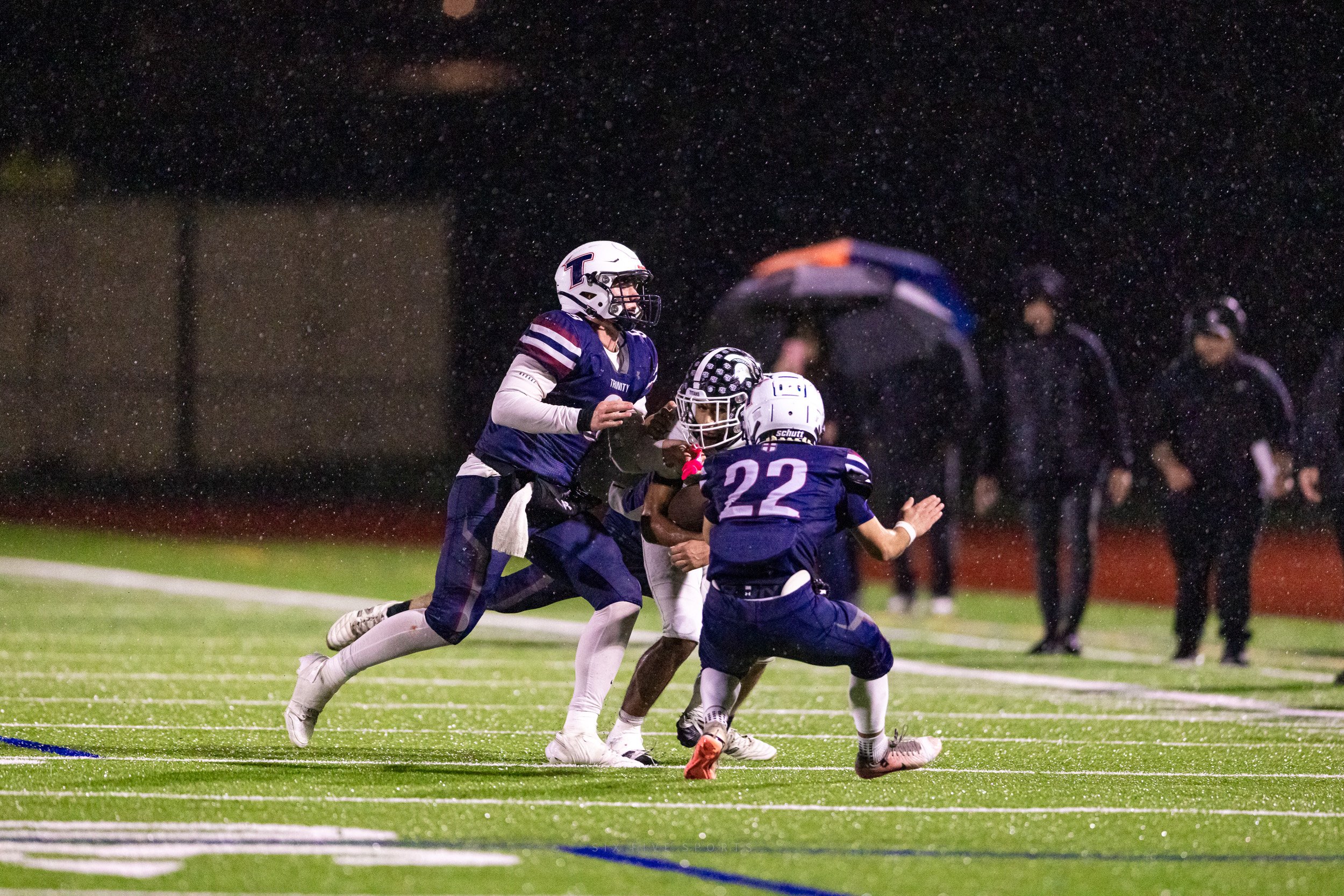 The message that Trinity put out on Friday morning was to grab your umbrella and come out to HART High School to support Knights Football! And that they did, the crowd was strong, the cheerleaders were loud, and Trinity Football competed in their final game of the season.