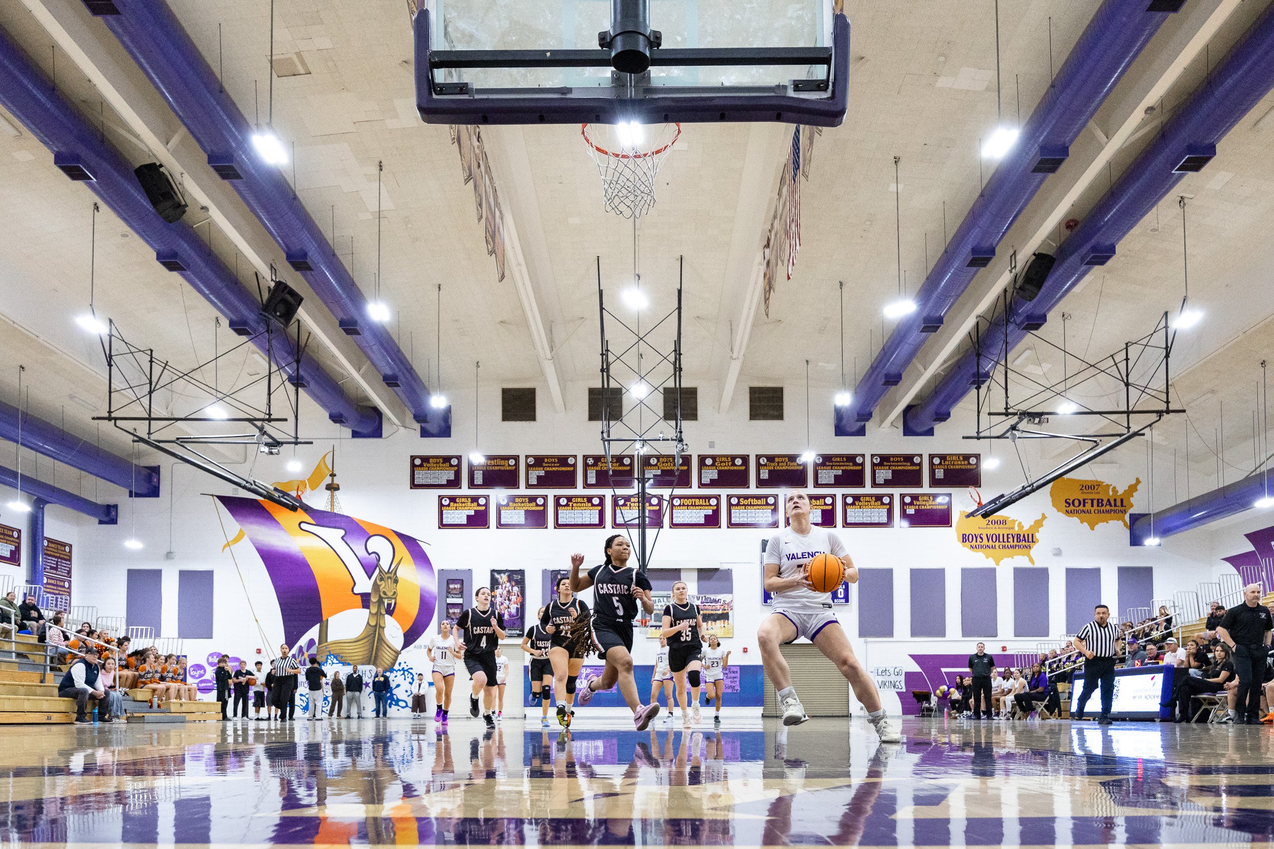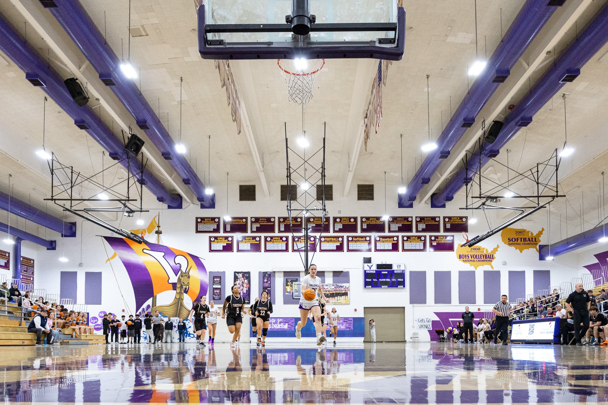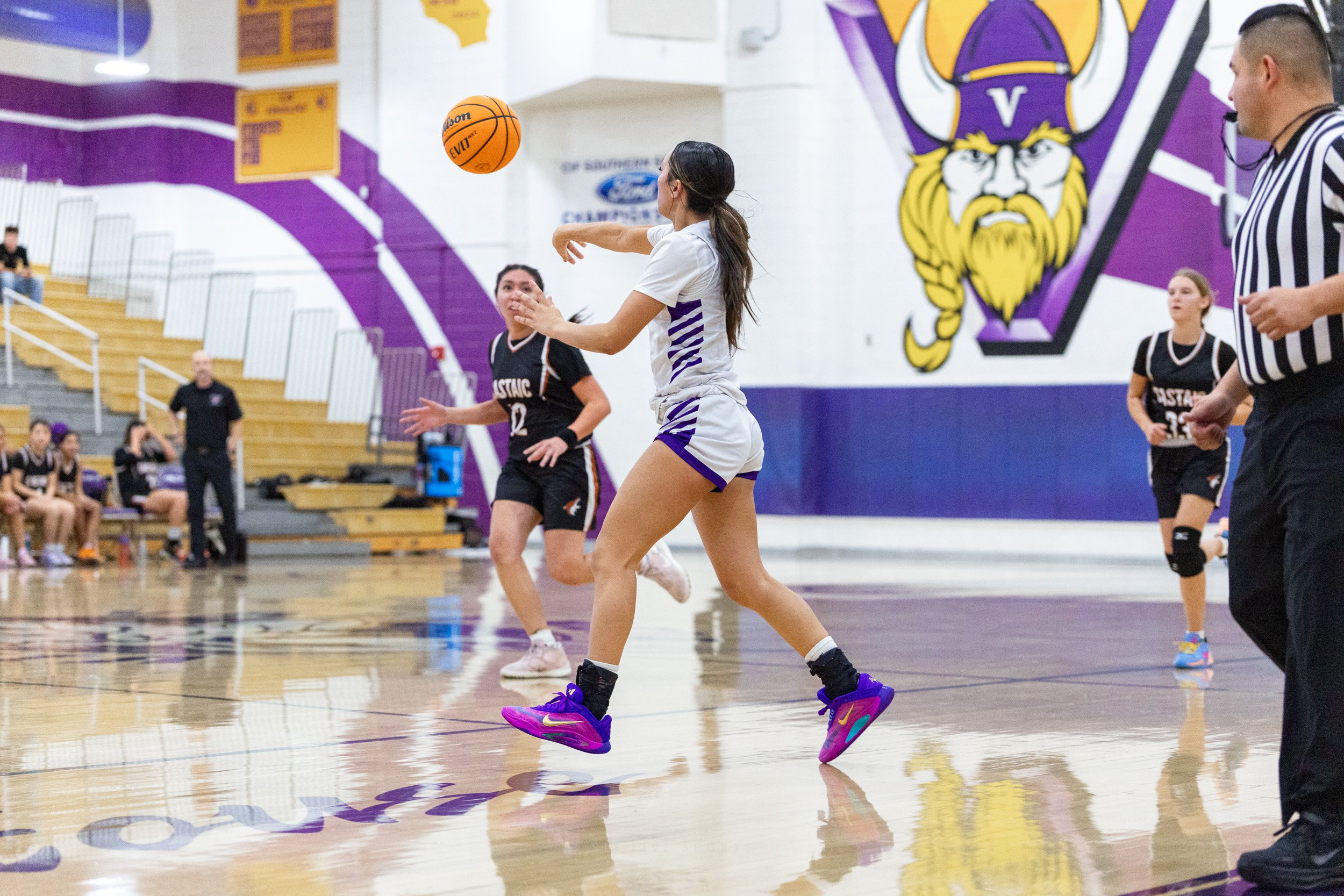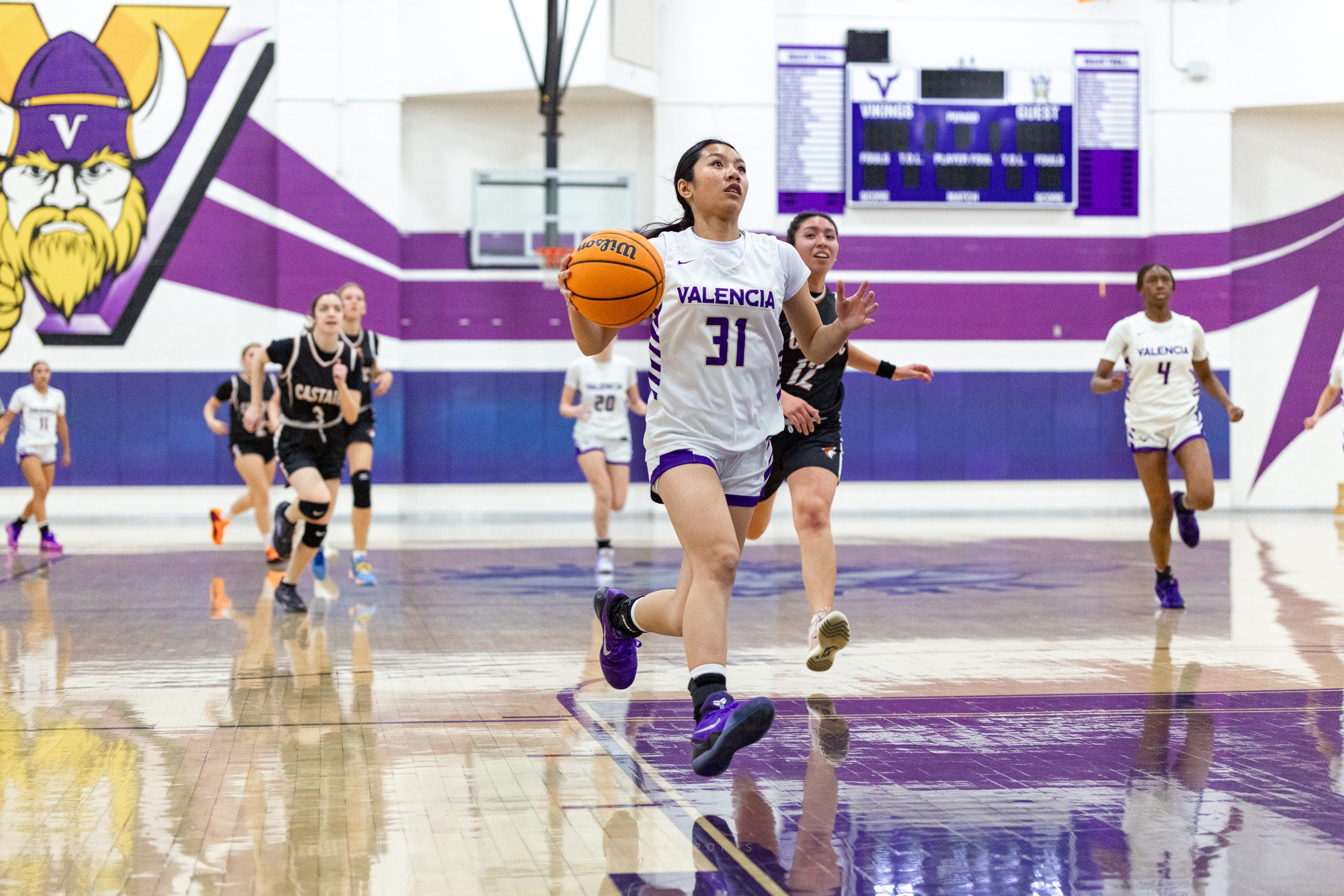As the regular season starts to wind down, every team in the Foothill League is coming after Valencia, hoping they will be the one to tarnish their league record….Castaic was no exception. They put up a fight, going for the loose balls, not being afraid to defend strongly, but in the end it was no match for the talented and aggressive play from the Vikings.