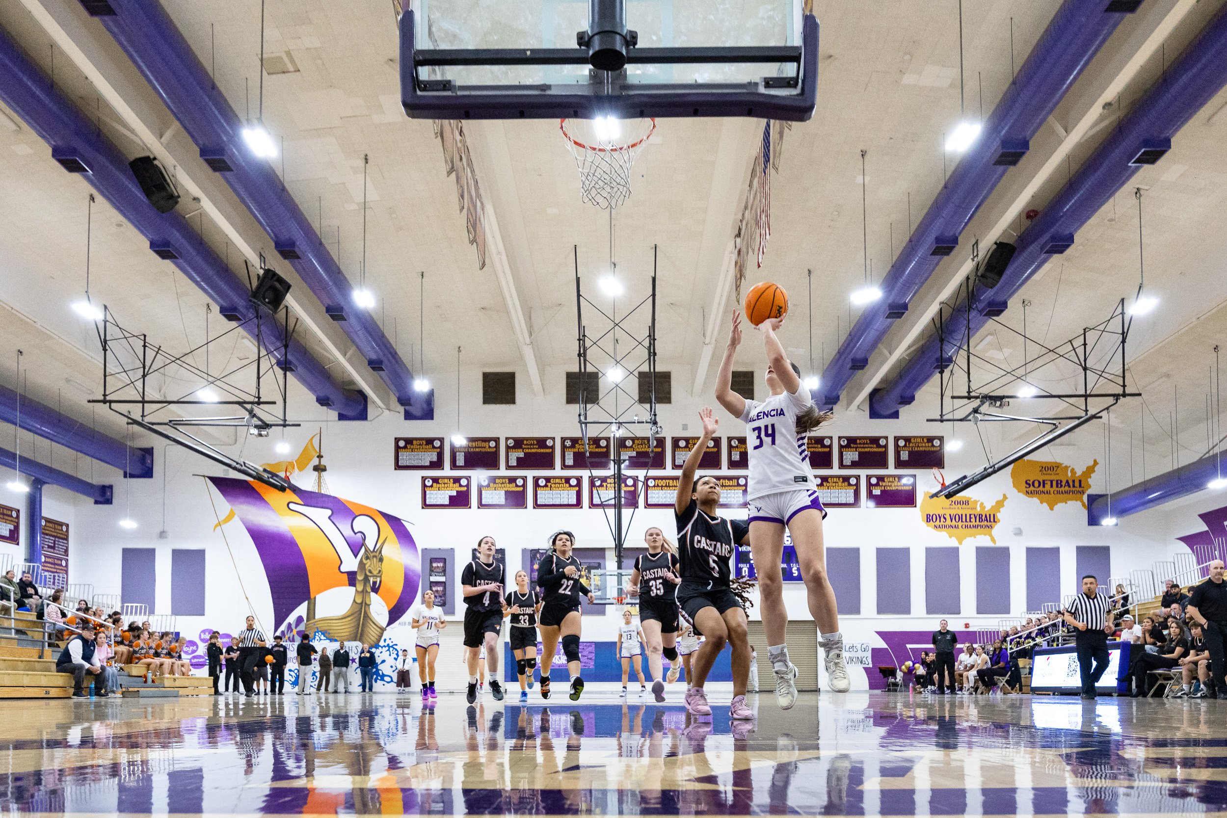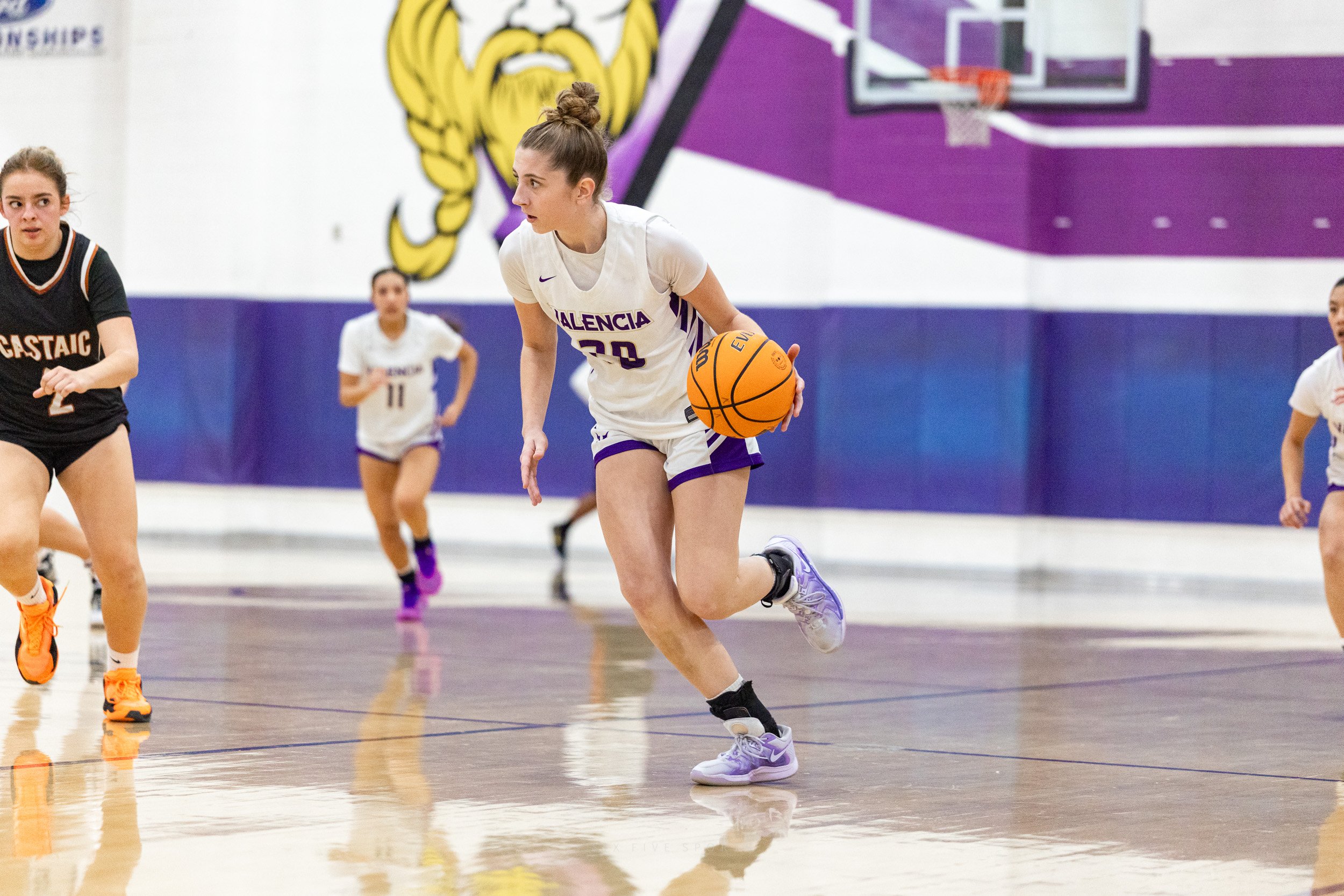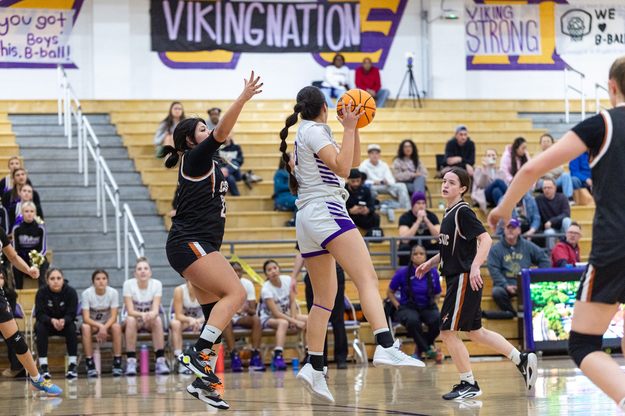 As the regular season starts to wind down, every team in the Foothill League is coming after Valencia, hoping they will be the one to tarnish their league record….Castaic was no exception. They put up a fight, going for the loose balls, not being afraid to defend strongly, but in the end it was no match for the talented and aggressive play from the Vikings.