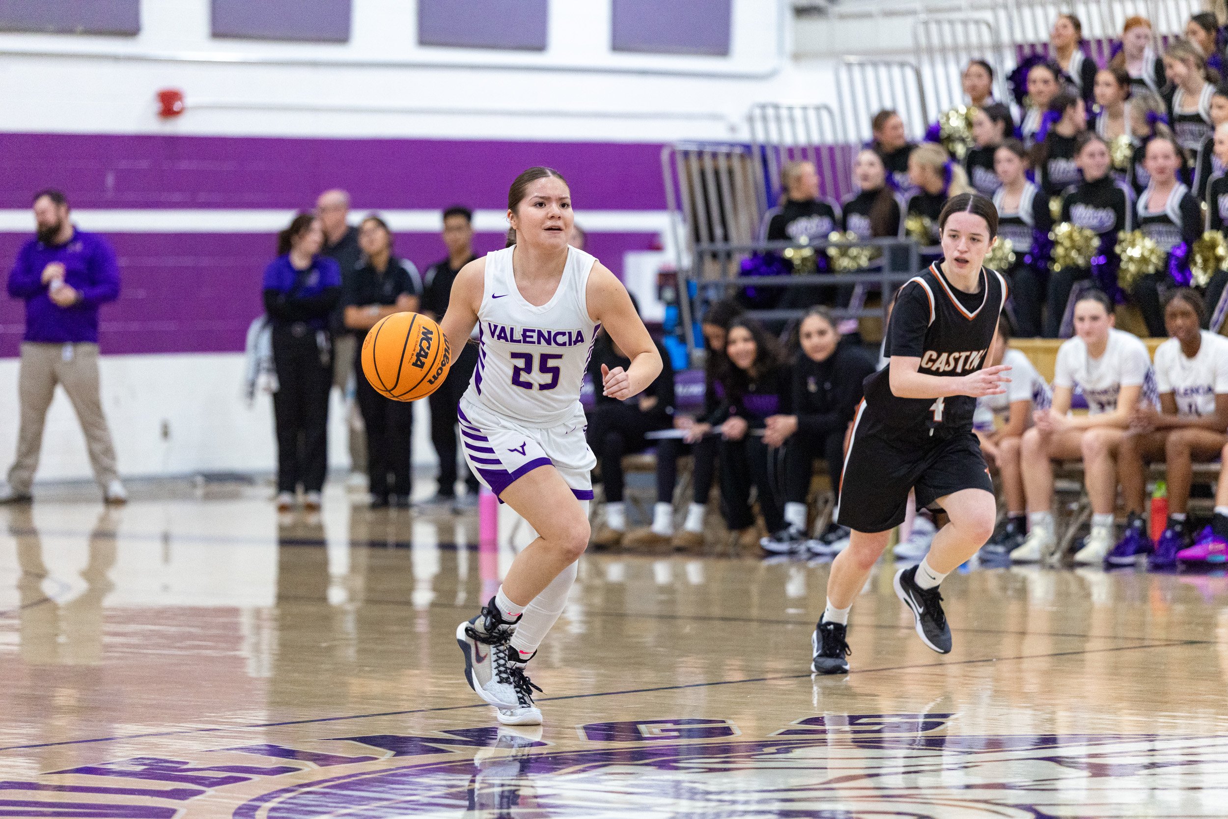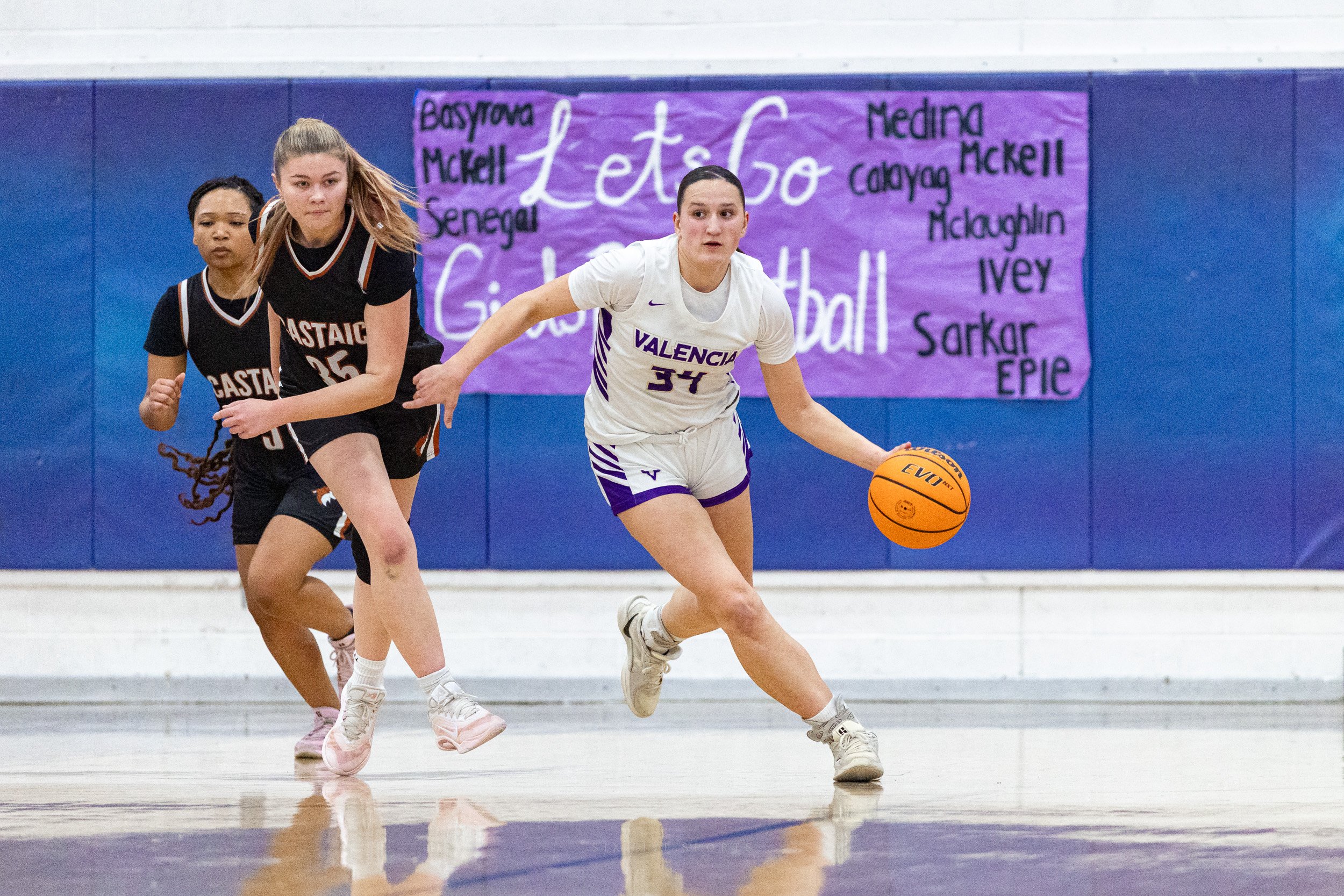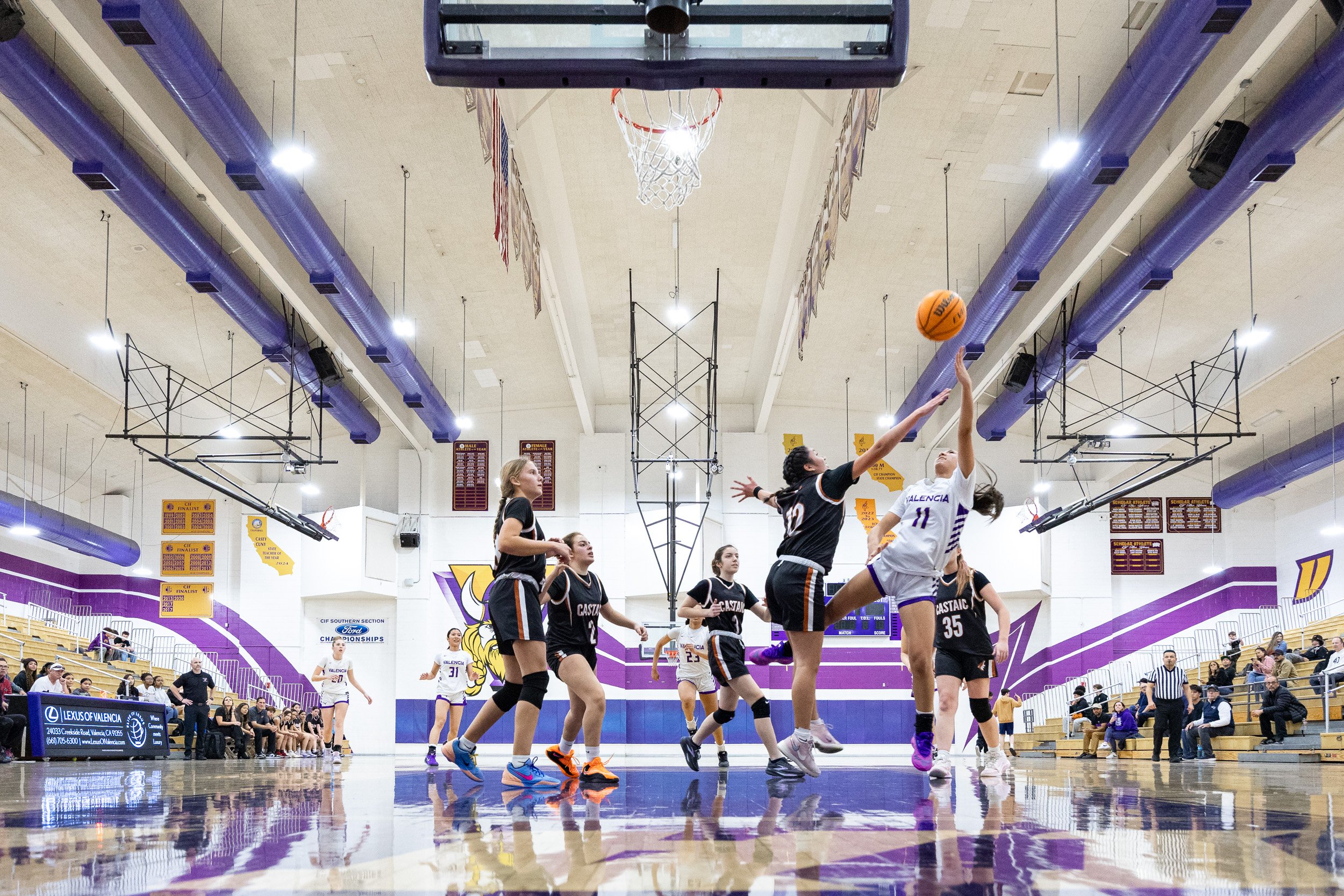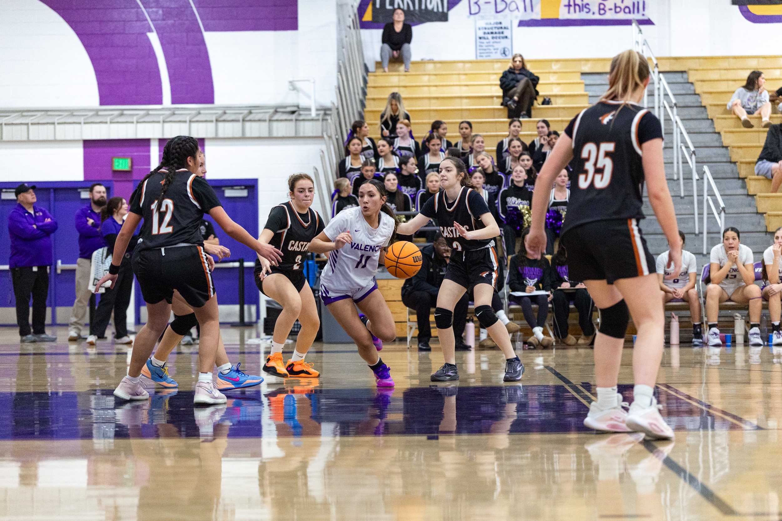 As the regular season starts to wind down, every team in the Foothill League is coming after Valencia, hoping they will be the one to tarnish their league record….Castaic was no exception. They put up a fight, going for the loose balls, not being afraid to defend strongly, but in the end it was no match for the talented and aggressive play from the Vikings.